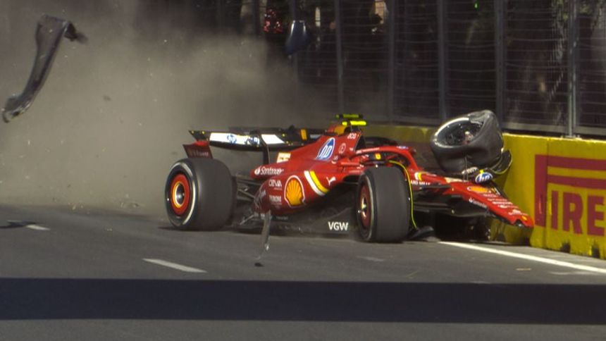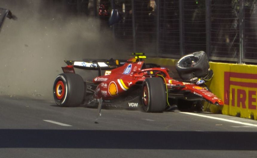 Justo en el giro 50, exactamente entre la segunda y la tercera curva en el circuito de Bakú, Sergio Pérez y Carlos Sainz peleaban por el tercer sitio en el Gran Premio de Azerbaiyán, el piloto azteca se abre, comienza a ganarle la posición al español que, cierra el espacio, y terminó provocando un choque que envió a los dos a la barrera de contención.