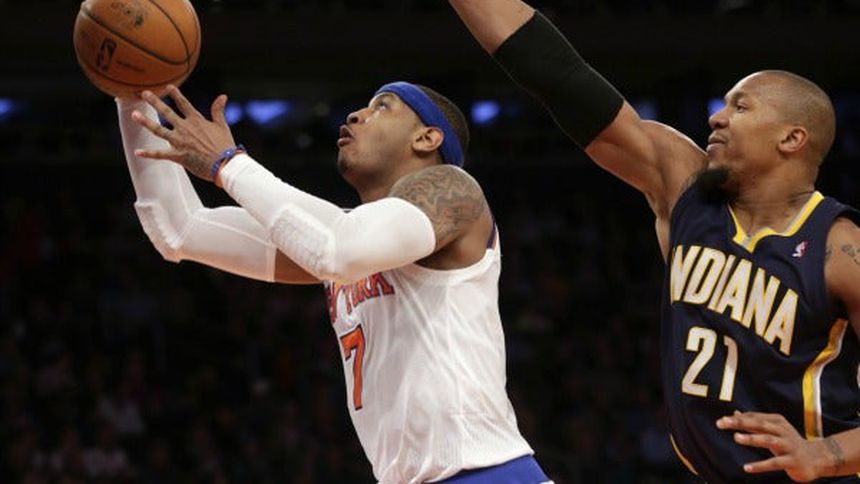 El alero Carmelo Anthony celebró con un triunfo de los Knicks de Nueva York ante los Hawks de Atlanta (98-92) su primer título de máximo anotador de la liga aunque no jugó ni un sólo minuto del último partido de la temporada regular.