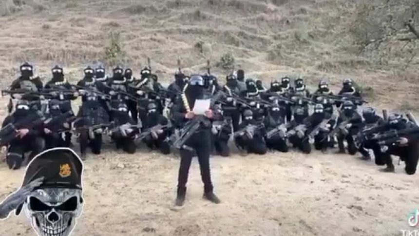 “Soy miembro activo del Cártel Jalisco Nueva Generación”, se escucha decir a hombre parado frente a la cámara, encapuchado y armado que es escoltado por otros 30 tipos con las mismas características, agregando que busca “esclarecer los hechos basados en la realidad en tiempo y forma”.