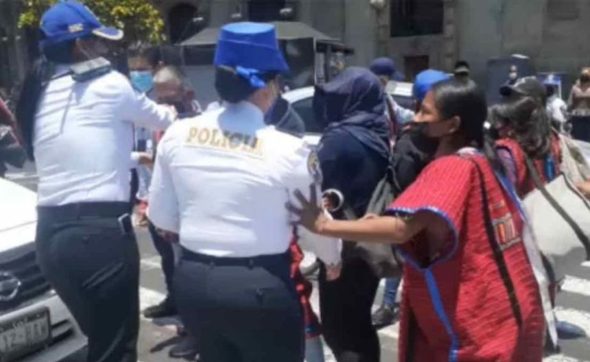 En redes sociales circula un video en el que se observan a autoridades repartiendo jalones y empujones con comerciantes indígenas en la zona del Zócalo.