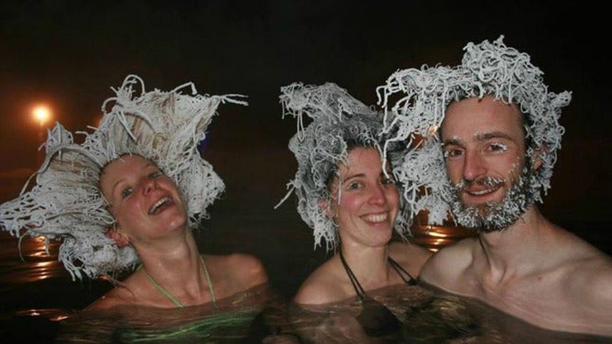 Los participantes deben sumergirse en aguas termales, posteriormente salen a la superficie para que el hielo haga efecto en su cabellera, la cual puede tomar formas increíbles al instante.