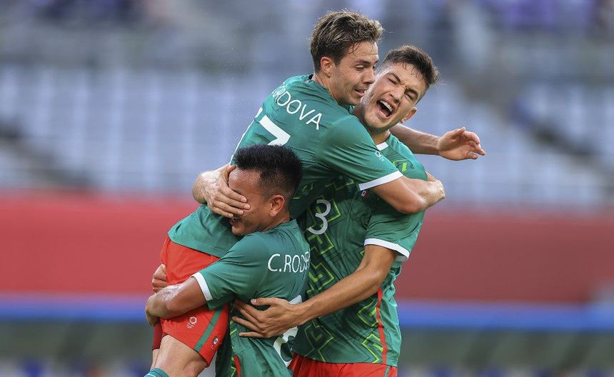 César Montes celebrando con Córdova y Charly Rodríguez | MEXSPORT