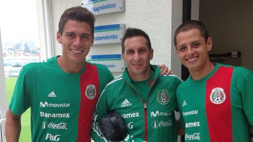 En tanto, en la segunda foto sale abrazado junto a Héctor Herrera, Ángel Reyna, Javier Aquino, Damián Álvarez, nuevamente Chicharito y Fernando Arce, con el Estadio Azteca de fondo: a todos ellos los considera su "banda".