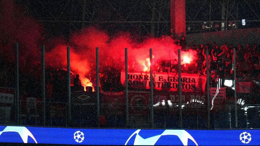 La exhibición futbolística de la Real Sociedad ante el Benfica en Champions League fue opacada por la afición portuguesa, que lanzó bengalas durante el partido a la zona cercana en donde se ubicaban los fanáticos del conjunto Txuri-urdin.