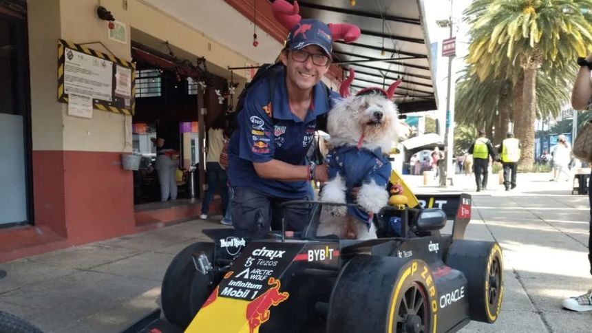 Checo Pérez conoció a Fabbio, el perrito que anda en un Fórmula 1 en la CDMX