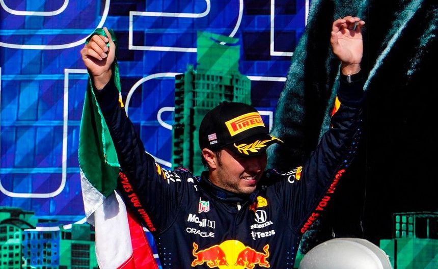 Checo Pérez en ceremonia del GP de Estados Unidos | EFE