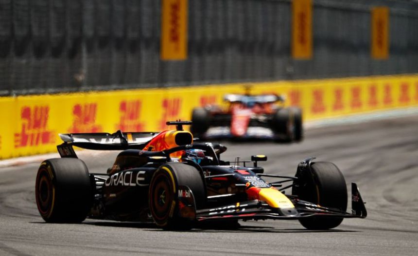 Checo Pérez finalizó tercero en la sprint del Gran Premio de Miami, dominada por Verstappen