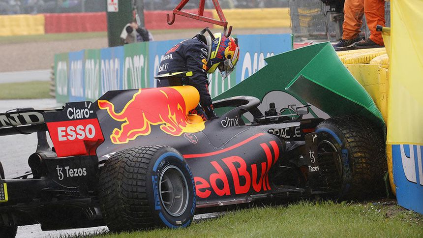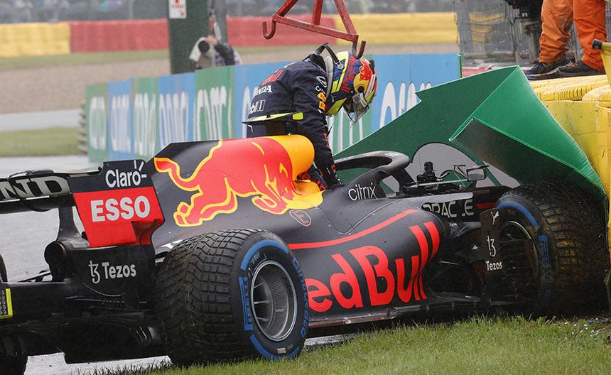 En las vueltas de reconocimiento, antes del inicio del GP, Checo perdió el control de su Red Bull y chocó contra las barreras de protección, lo que dañó la suspensión delantera de su coche.