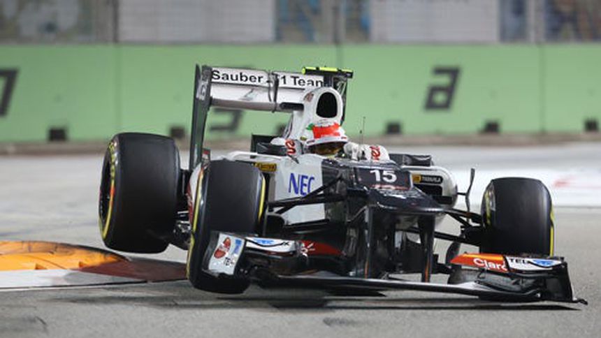 El mexicano Sergio Pérez remontó 3 posiciones para terminar onceavo en el GP de Singapur, pero ascendió un puesto tras la sanción al piloto australiano Mark Webber (Red Bull).