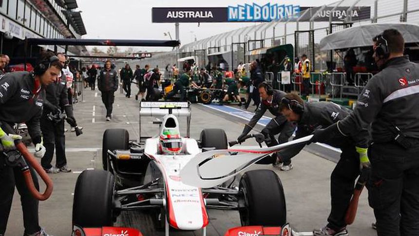 Pérez debutó en la Fórmula Uno el domingo 27 de marzo en el circuito del Albert Park, en Australia, donde luego de terminar en séptimo lugar, su auto fue descalificado al no pasar el escrutinio de los comisarios de la serie, por un error de diseño en el monoplaza.