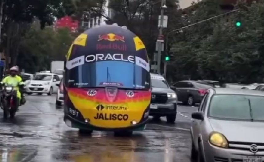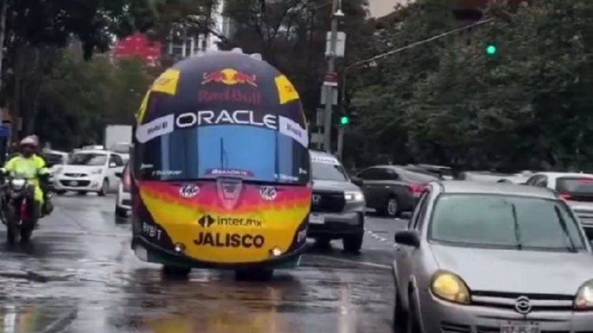 La llegada de Sergio 'Checo' Pérez a su país natal ha generado mucha emoción para los aficionados, pues en las calles de la Ciudad de México la escudería de Red Bull estuvo circulando con el casco que el piloto tapatío estará utilizando en el Gran Premio de México este fin de semana.