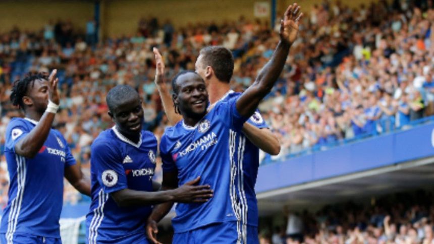 Jugadores del Chelsea celebran un gol con la afición | AP