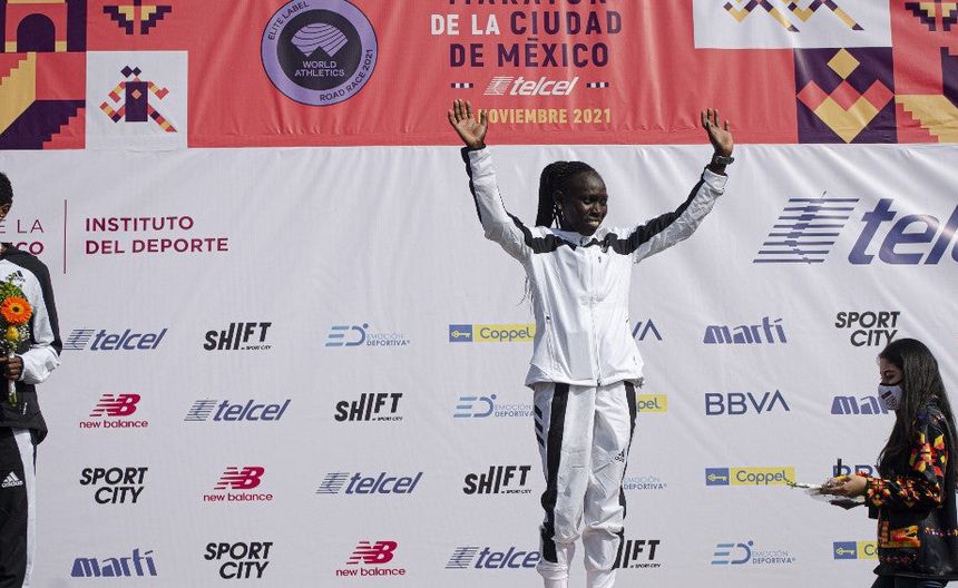 La atleta de 24 años de edad cruzó la meta instalada a un costado de Palacio Nacional en un tiempo de 2 horas 27 minutos y 22 segundos, con esto superó las 2 horas, 33 minutos y 28 segundos que había marcado su compatriota Vivian Kiplagat en la edición de hace dos años, justamente la última antes de la pausa por la pandemia de Covid-19.