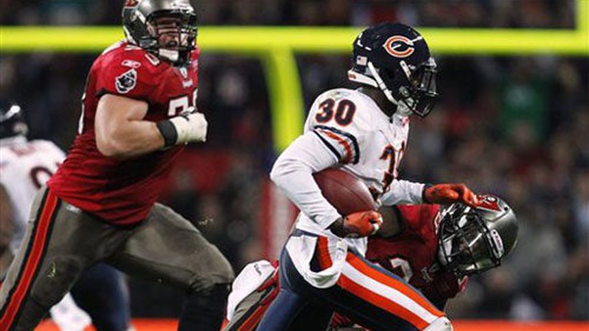 Matt Forte corrió para 145 yardas y un touchdown, y los Osos de Chicago mantuvieron la ventaja para derrotar a los Bucaneros de Tampa Bay 24-18 el domingo en el quinto juego anual de temporada regular sostenido en el Estadio de Wembley.