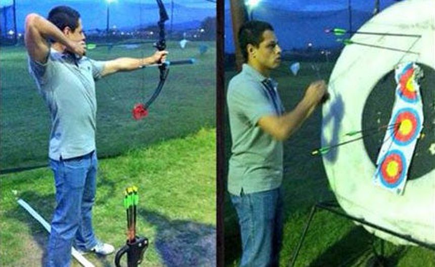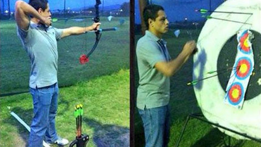 El futbolista Javier ';Chicharito'; Hernández, jugador del Manchester United, demostró su talento para el tiro con arco en una clase privada en un club de Guadalajara, de acuerdo con información publicada por el periódico Reforma.
