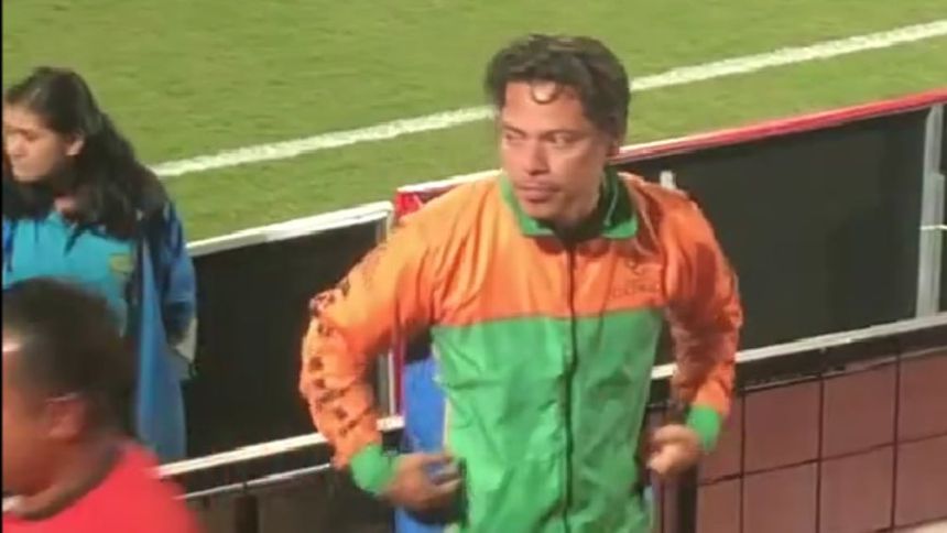 El video, que fue publicado por el usuario Sebastián Hernández, muestra al joven caminando por un pasillo del estadio, de repente se encuentra con un hombre que tiene un parecido sorprendente con el artista.