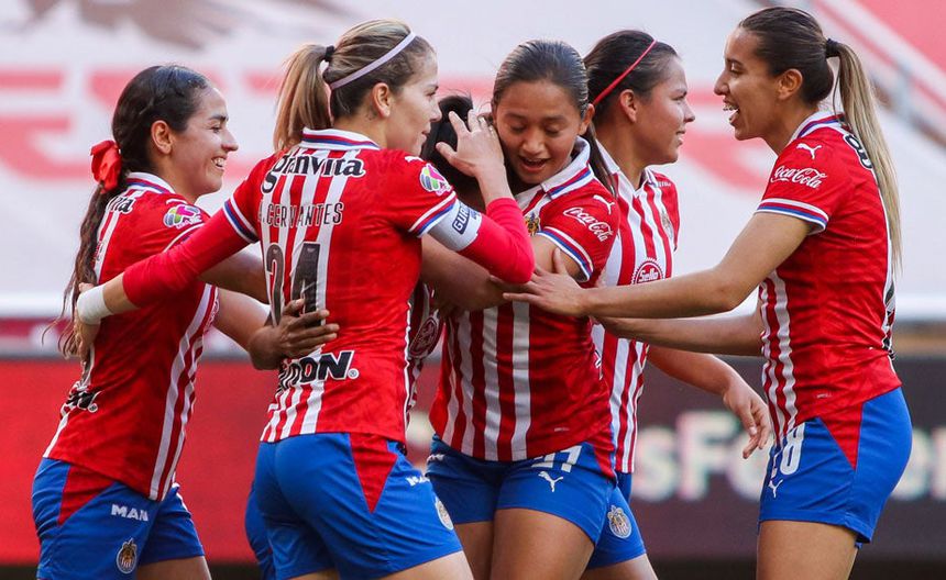 Jugadoras de Chivas, en festejo de gol | IMAGO7