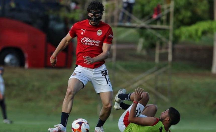 Chivas: Pollo Briseño porta máscara protectora en el rostro en pretemporada