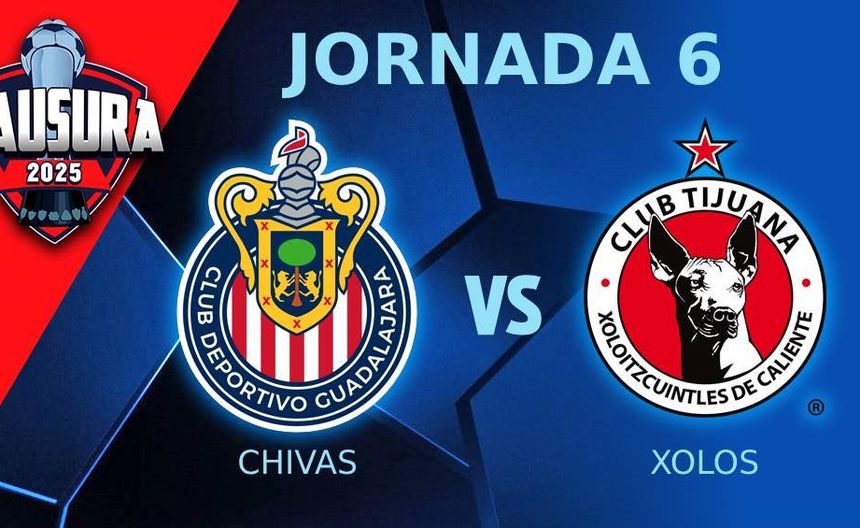 Este domingo, el futbol mexicano continúa su ritmo con dos partidos correspondientes a la Jornada 6 del Torneo Clausura 2025 de la Liga MX. Uno de los duelos más anticipados de la fecha será el enfrentamiento entre Chivas y Xolos, el cual será el cierre de la sexta jornada.