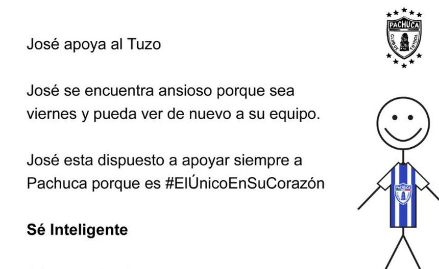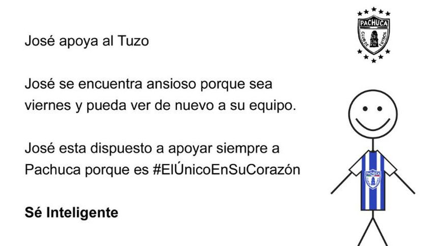 "José apoya al Tuzo. José se encuentra ansioso porque sea viernes y pueda ver de nuevo a su equipo. José está dispuesto a apoyar siempre a Pachuca por que es #ElÚnicoEnSuCorazón", se puede leer en la cuenta oficial de Pachuca.