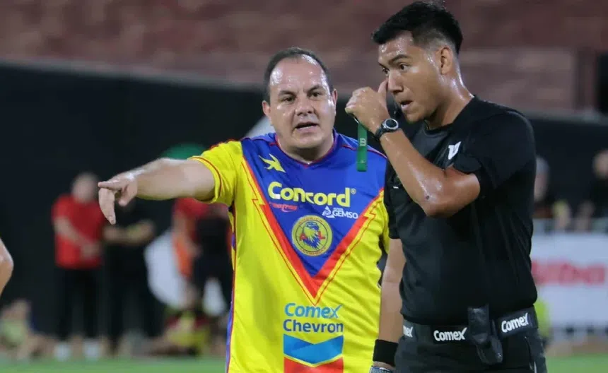 Pese a ser un partido amistoso, los exjugadores lo disputaron con la máxima tensión; un ejemplo de ello fue un encontronazo futbolero entre el ‘Cuau’ y Héctor Reynoso mientras se encontraban disputando un esférico.
