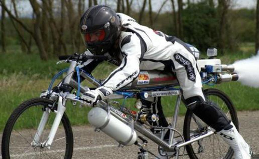 Sin pedalear, el galo alcanzó los 333.1 kilómetros por hora en sólo 4.8 segundos y batió el récord de velocidad de 334.6 kilómetros por hora que mantenía el británico Bruce Bursford.