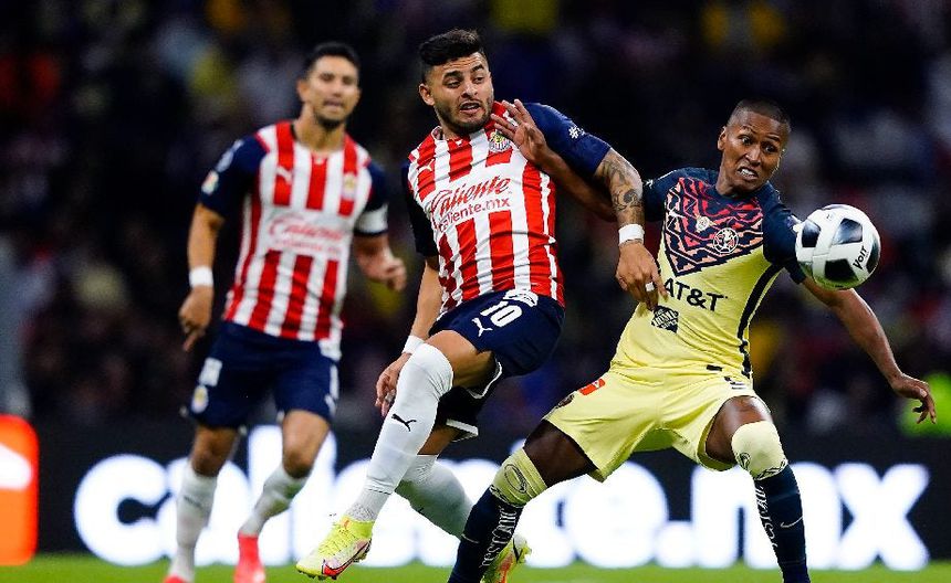 Alexis Vega (Chivas) vs Pedro Aquino (América) en partido de la Liga MX | IMAGO7