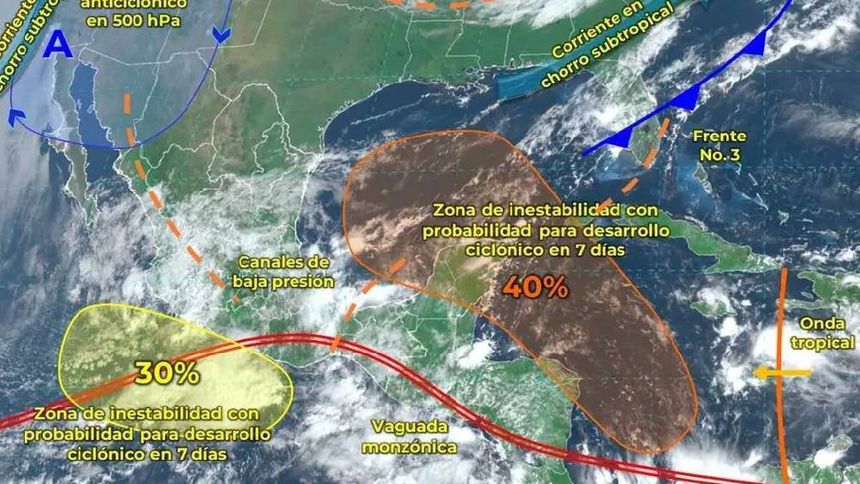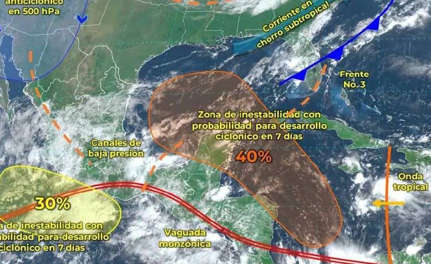 Un canal de baja presión en el sureste de México, en combinación con la vaguada monzónica, generará condiciones meteorológicas adversas en diversas regiones del país. Se anticipan lluvias intensas, descargas eléctricas y granizo en los estados del occidente, centro, sur y sureste, así como vientos fuertes en la costa de Veracruz y el Istmo de Tehuantepec. Las áreas más afectadas incluirán Guerrero, Oaxaca, Chiapas y Veracruz, donde las precipitaciones podrían superar los 150 mm.