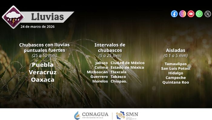 Estados con lluvias HOY 24 de marzo