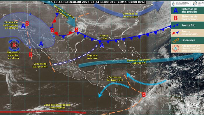 El clima en México para este martes 24 de marzo de 2026 estará marcado por contrastes extremos. Mientras algunas regiones enfrentarán lluvias intensas y posibles tormentas eléctricas, otras registrarán temperaturas sofocantes de hasta 45 grados, todo en medio de la vigilancia de un nuevo frente frío.