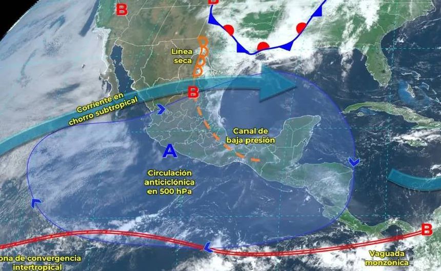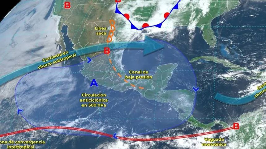 Se espera una segunda ola de calor en México con temperaturas superiores a los 40°C en varias regiones del país. También se pronostican vientos fuertes, lluvias intensas con descargas eléctricas y posible formación de tornados en el norte y noreste, así como lluvias y chubascos en el centro y sureste, con posibles precipitaciones fuertes en algunas zonas específicas.