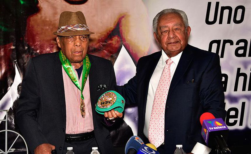 Durante el evento, el otrora monarca mundial cubano, avecindado en México desde la década de los 60, recibió una pequeña réplica del cinturón verde y oro de la organización.