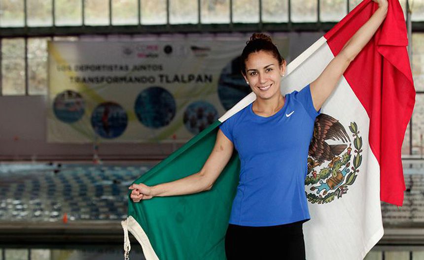 Paola Espinosa, luciendo orgullosa con la bandera de México | DANIEL GÁMEZ