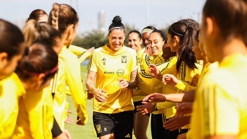 Después de anunciarse el fichaje, la jugadora española vivió su primer entrenamiento con Tigres, las cuales se encargaron de darla la bienvenida haciendo el tradicional pasillo antes de salir al trabajo en cancha.