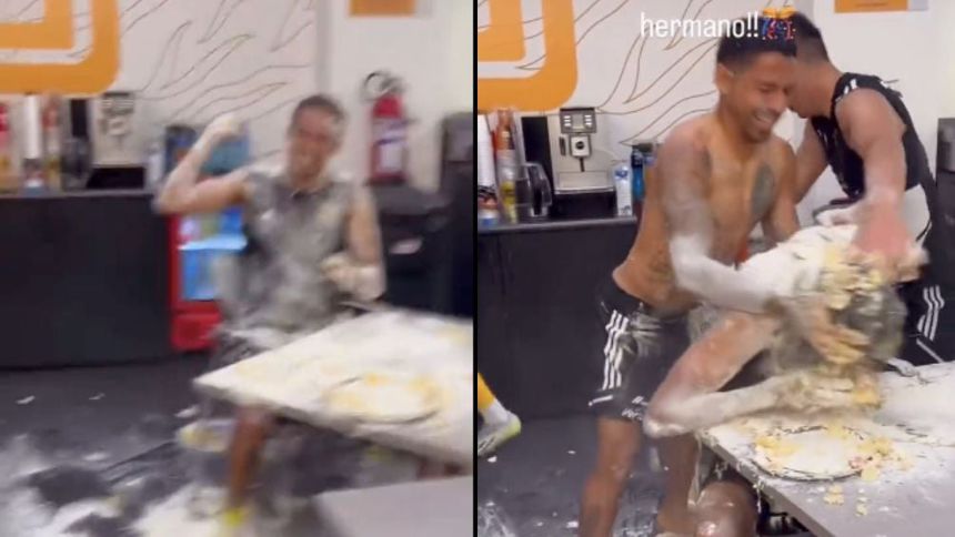 Los futbolistas felinos embarraron, literalmente, de todo a Diego Reyes, algunos le echaron harina, otros huevo mientras que Javier Aquino le reventó el pastel en el rostro, eso sí, Jesús Ángulo le quitó la vela de chispas para no ocasionales una lesión al mexicano.