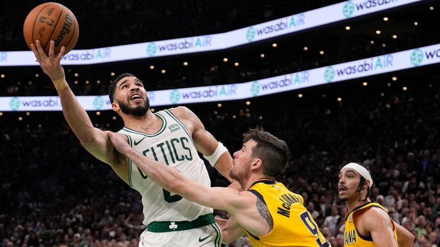Jayson Tatum anotó 36 puntos, incluyendo 10 en el tiempo extra, y Jaylen Brown encestó un triple para el empate a 6.1 segundos del final del tiempo regular por los Celtics de Boston, que remontaron a tiempo para vencer 133-128 a los Pacers de Indiana en el primer partido de las finales de la Conferencia Este; Jrue Holiday añadió 28 tantos, su máximo número de la temporada, y Brown terminó con 26 unidades.