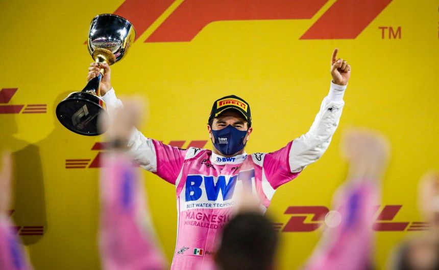 En el Gran Premio de Sakhir en 2020, con Racing Point, el mexicano largó desde la P5, pero un choque en la primera vuelta -que dejó fuera a Charles Leclerc y Verstappen- obligó a que el tapatío a parar en boxes, con lo que cayó hasta el último puesto. Sin embargo, después de 20 vueltas ya estaba Top 10 y para el giro 44 ya estaba entre los tres primeros.