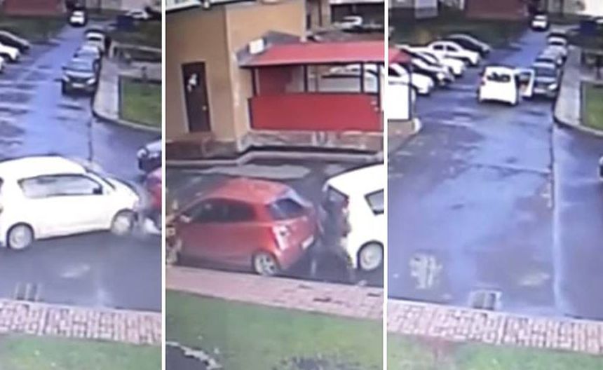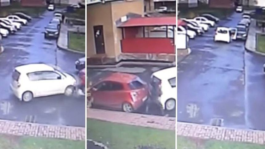 Sin embargo, la mitad de la pieza quedó fuera del vehículo y les impidió cerrar una de las puertas delanteras. El conductor arranca y con la puerta le pegó a otro automóvil color negro; todo en un minuto; el bochornoso percance fue grabado por las cámaras de seguridad del estacionamiento. La tragedia del conductor, en pocas horas, fue vista por 600 mil usuarios.