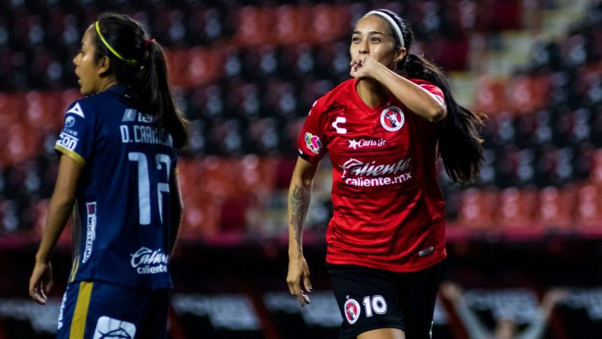 Renae Cuéllar celebra uno de sus goles en la Liga MX Femenil | IMAGO7