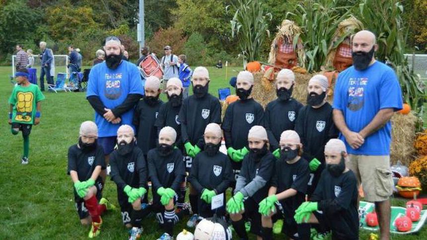 Un equipo de futbol infantil de Nueva Jersey le hizo un tributo a Tim Howard, arquero de la selección de Estados Unidos, al caracterizarse como él, con barbas y calvas falsas.