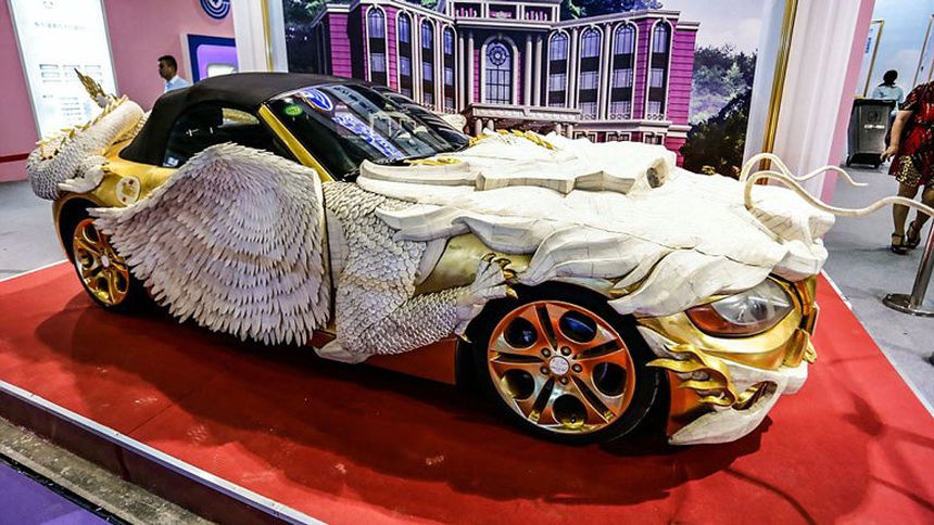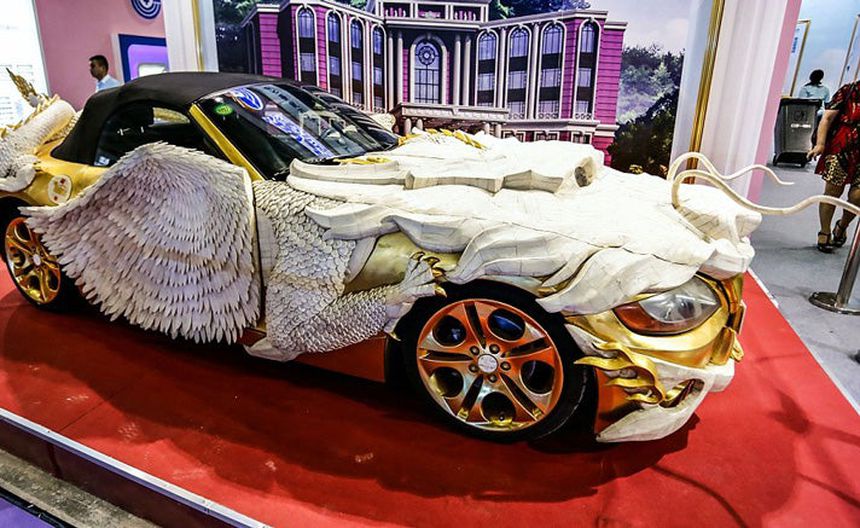 Convierten auto lujoso en dragón