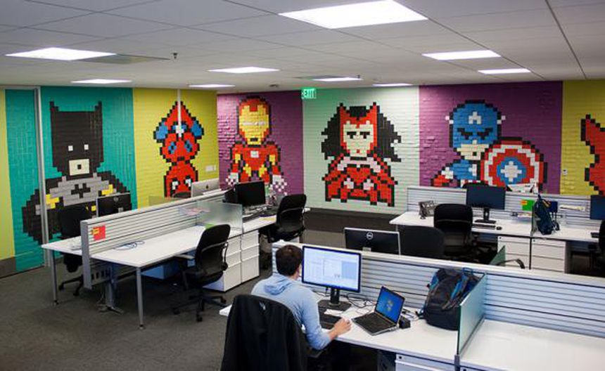 Un empleado de una agencia creativa decidió convertir las aburridas paredes de su oficina en un mural de Superhéroes pixeleados con Post-It.