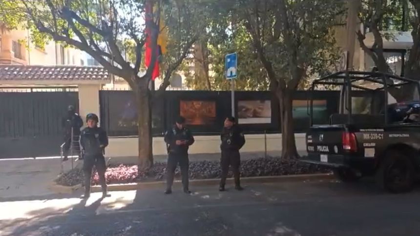 Policía capitalina resguarda Embajada de Ecuador