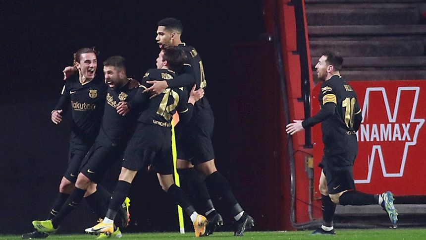Barcelona cumplió los pronósticos y se clasificó este miércoles, aunque con muchísimo sufrimiento, para las Semifinales de la Copa del Rey al vencer en el cruce de Cuartos de Final, disputado a partido único en el Estadio Nuevo Los Cármenes, por 3-5 al Granada en un partido que se decidió en la prórroga tras acabar 2-2 el tiempo reglamentario.