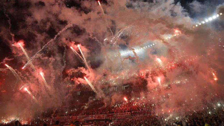 Desde el momento en que los jugadores del Millonario salieron al campo para el calentamiento, la tribuna estalló en una ovación, mientras las primeras bengalas iluminaron el Monumental con los colores rojo y blanco característicos del club. A medida que transcurría el precalentamiento, la intensidad de los cánticos y el humo se incrementaba.