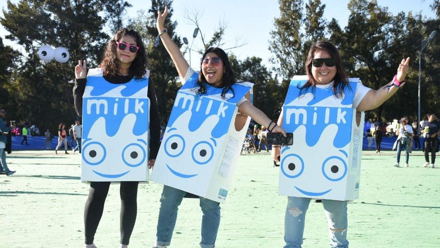 Lo que también llama la atención, es la gente que viene con algún distintivo de Blur, la banda más esperada por todos este día.