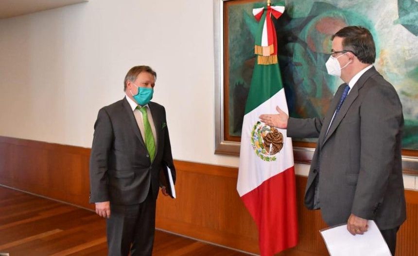 Ebrard junto a Víctor K. Koronelli, embajador de la Federación de Rusia en México | TWITTER @M_EBRARD