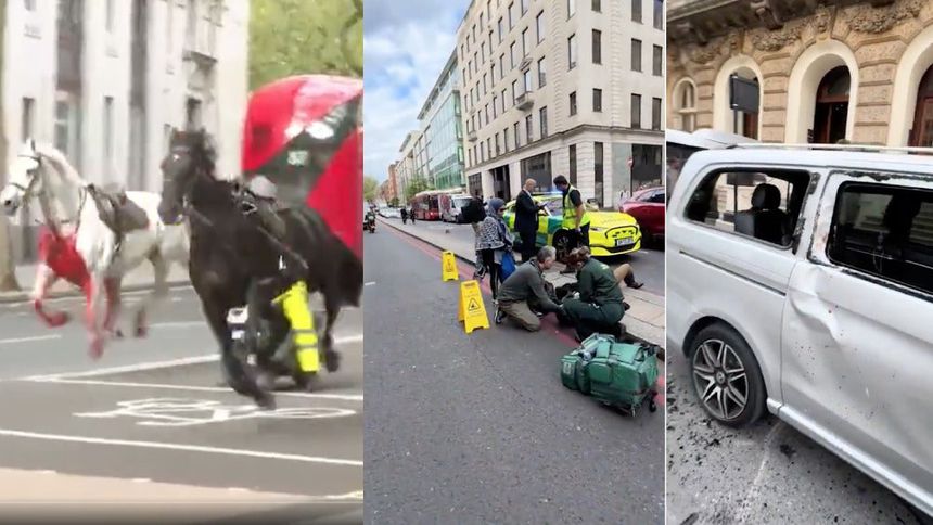Las imágenes y videos compartidas en las redes sociales mostraban a dos de los caballos galopando en Aldwych, entre el histórico centro financiero de Londres y el concurrido distrito de teatral de West End. Uno de los caballos estaba manchado de lo que parecía sangre o pintura roja en la parte delantera. El ejército no ha confirmado si era sangre o lo que causó la lesión.