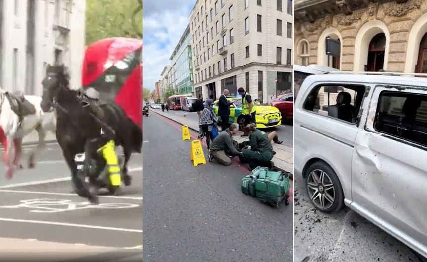 Un caballo asustado rompió la ventanilla de un taxi que esperaba cerca del Palacio de Buckingham, mientras que otro chocó contra un autobús estacionado de dos pisos y causó daños en el parabrisas. Los caballos son de la Household Cavalry, la guardia ceremonial del monarca y un elemento regular de los eventos estatales en Londres.