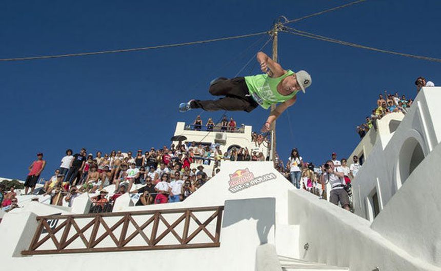 Cory DeMeyers logró llevarse la tercera edición del freerunning Red Bull Art of Motion que se llevó a cabo en la isla griega de Santorini.